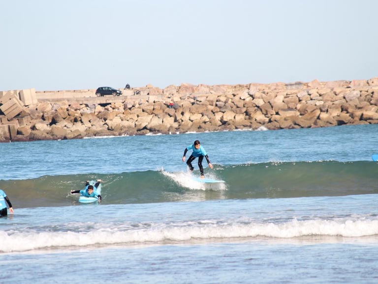 At our surf school, children discover the joy of surfing in a safe and supportive environment. Our certified coaches provide personalized lessons, combining skill development, ocean safety, and lots of fun. We focus on building confidence, teamwork, and a love for the sea, making every session an unforgettable experience.